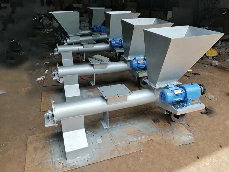 The machine can be equipped with a pull screw. In this version, the drive unit is located in the direction of the raw material feeding. Some screw conveyors are equipped with push screws with gear motor installed on the feeding side. The screw conveyor is fitted with an initial or end bearing. Depending on the type of transported raw material, slide or bearing rests are installed.